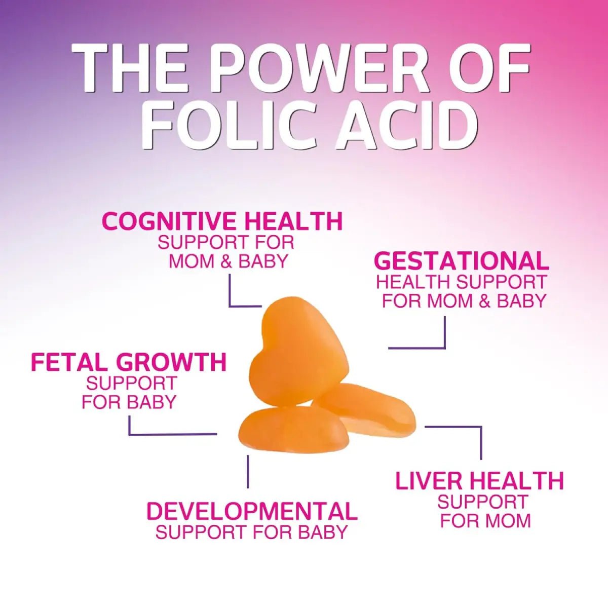 Nature's Nutrition Prenatal Multivitamin es un suplemento en gomitas con ácido fólico y vitaminas esenciales que apoya la nutrición materna, la energía diaria y el desarrollo saludable del bebé durante el embarazo y lactancia.