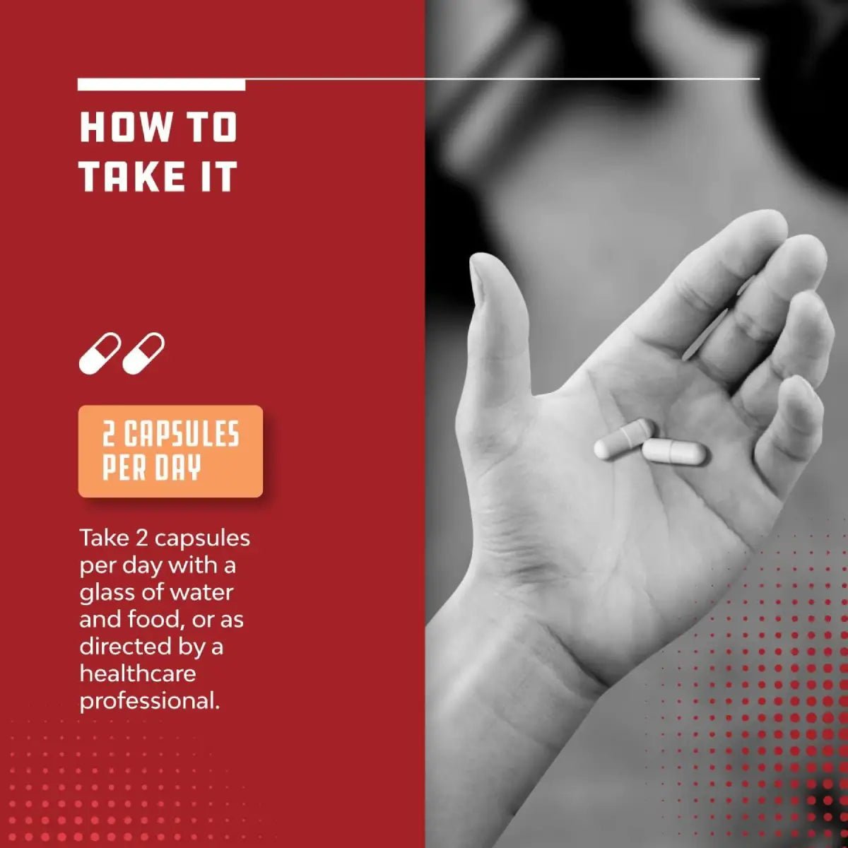 Uso recomendado: Tomar 2 cápsulas al día. Lea la etiqueta completa y siga las instrucciones con cuidado antes de usar el producto.