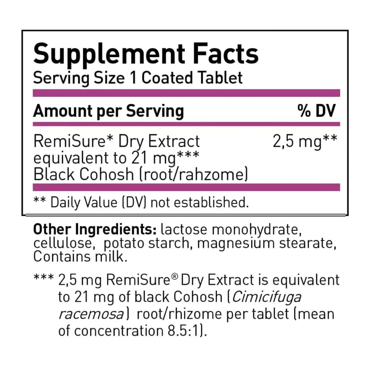 Cohosh 2.5 mg.