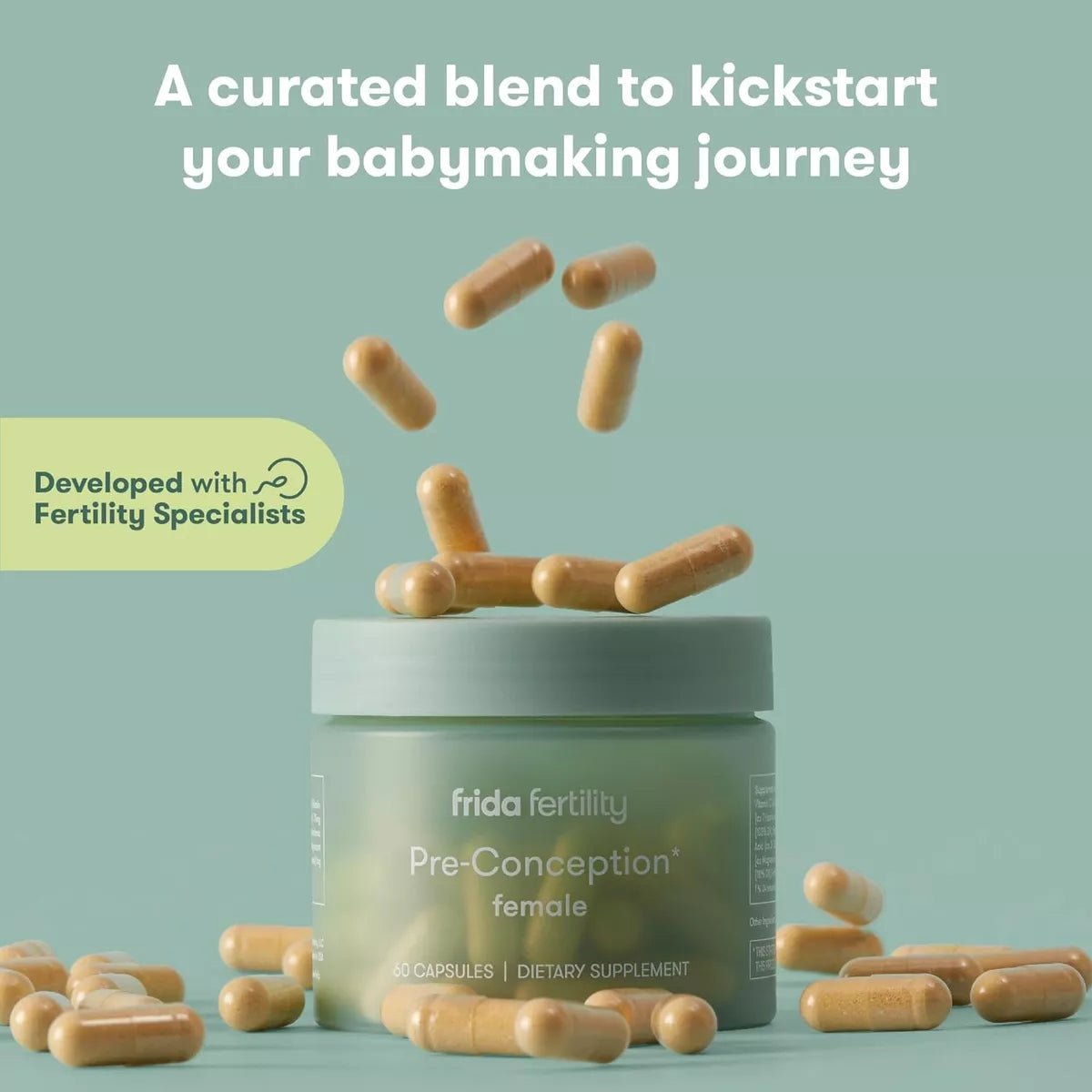 FRIDA Pre-Conception (Female) 60 Capsules is a supplement specifically formulated to support women's reproductive health and prepare the body before pregnancy.